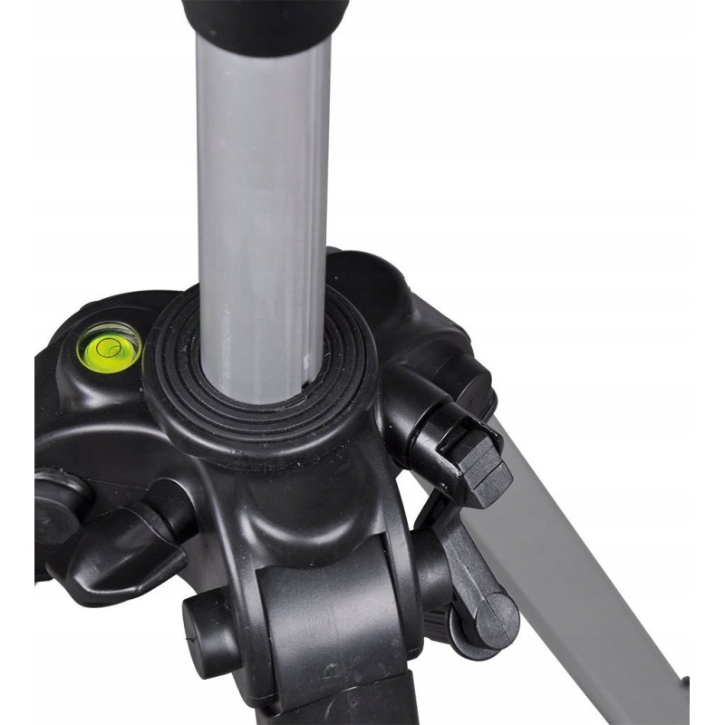 - Das Stativ besteht aus einer leichten Aluminiumlegierung, die mit Kunststoffelementen kombiniert wurde, um das Gesamtgewicht zu reduzieren.