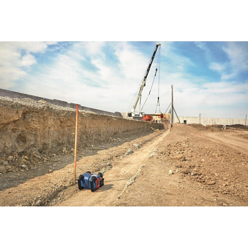 Für härteste Einsätze – das robuste Modell GRL 600 CHV Professional ist für den Einsatz unter widrigsten Bedingungen ausgelegt. Die robuste Konstruktion schützt vor Stößen, und die Schutzart IP68 schützt das Gerät sowie das Akkufach vor Staub und Wasser und gewährleistet so Flexibilität auch bei schwierigen Wetterbedingungen. Das Gerät bietet eine praktische Connectivity-Funktion, mit der Sie sich ganz auf Ihre Aufgabe konzentrieren können, ohne Zeit zu verlieren. Die Bedienung des Geräts ist dank des intuitiven Displays und des Zugriffs auf die App „Levelling Remote“ einfach, die alle Funktionen anzeigt, darunter auch die Funktion für den doppelten Neigungswinkel, was Zeit spart. Dieser hochpräzise Rotationslaser bietet eine lange Betriebsdauer sowohl mit dem 18-V-Akku als auch mit den mitgelieferten Alkalibatterien und gewährleistet so einen unterbrechungsfreien Betrieb.