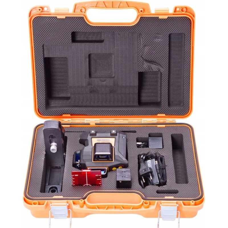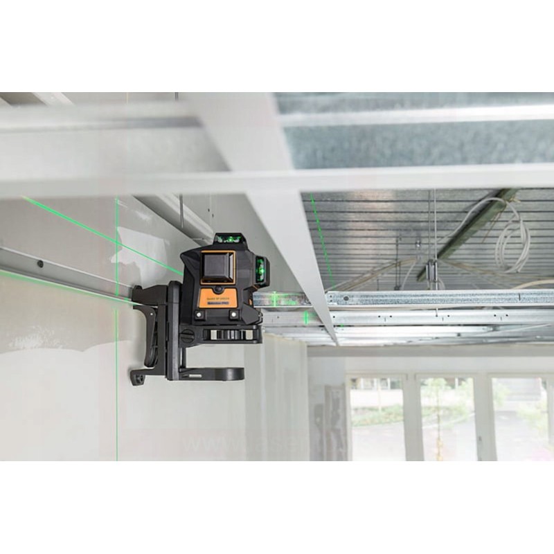- Sechs rechtwinklig angeordnete Laserkreuze – ermöglichen die Markierung von Horizontalen, Vertikalen und rechten Winkeln