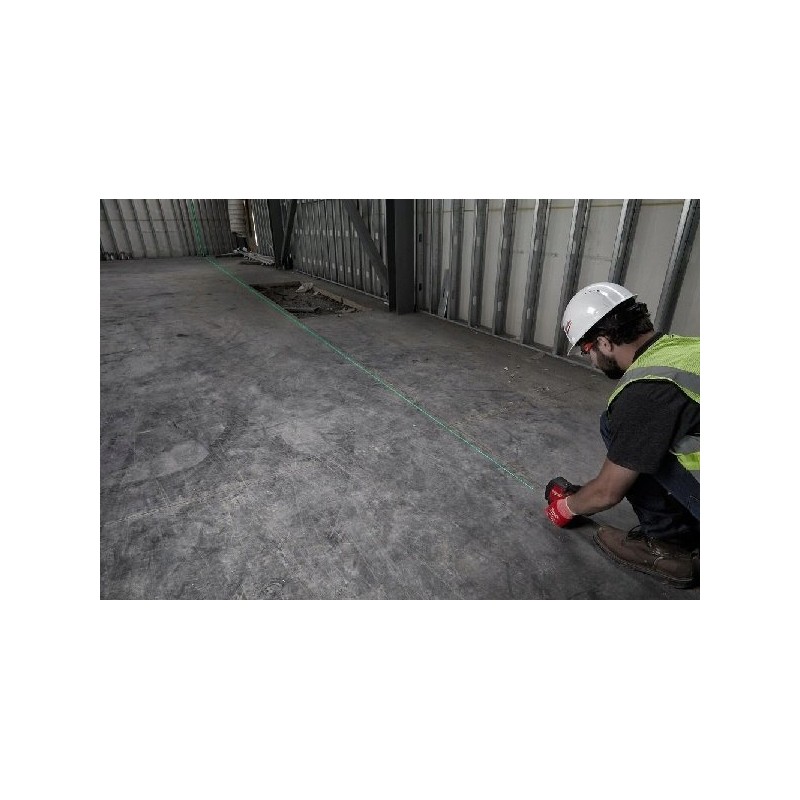 - Der hochintensive grüne Lichtstrahl ermöglicht Arbeiten in einer Reichweite von 30 m (50 m mit Detektor).
