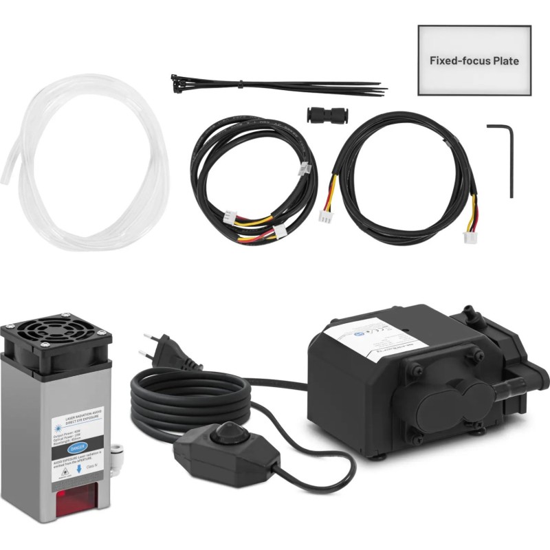 - - Gravierlaser mit Luftunterstützung (Air Assist), Laserschutzabdeckung, feste Fokussierplatte sowie alle Anschlüsse und Montagezubehörteile,
