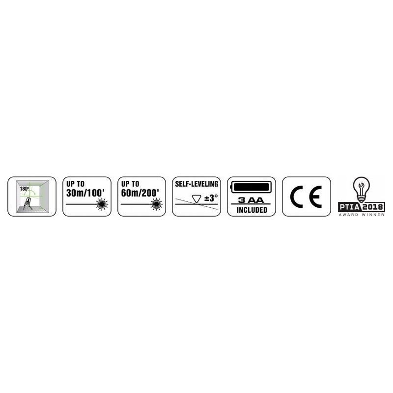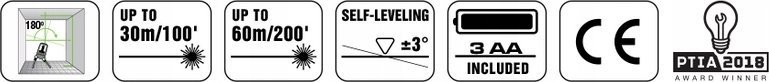 - Laserreichweite im Innenbereich: 30 m (100 ')