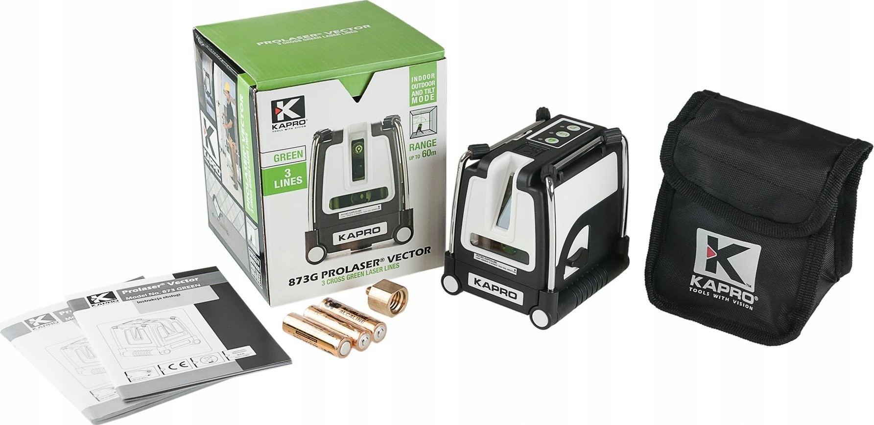 LASER-NIVELLIERGERÄT MIT LINEAR- UND KREUZSTRALEN, 2 X VERTIKAL, 1 X HORIZONTAL, GRÜN KA873G