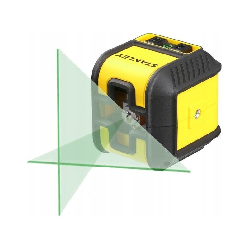 Der Laser strahlt zwei grüne Laserstrahlen (horizontal und vertikal) im 90°-Winkel aus