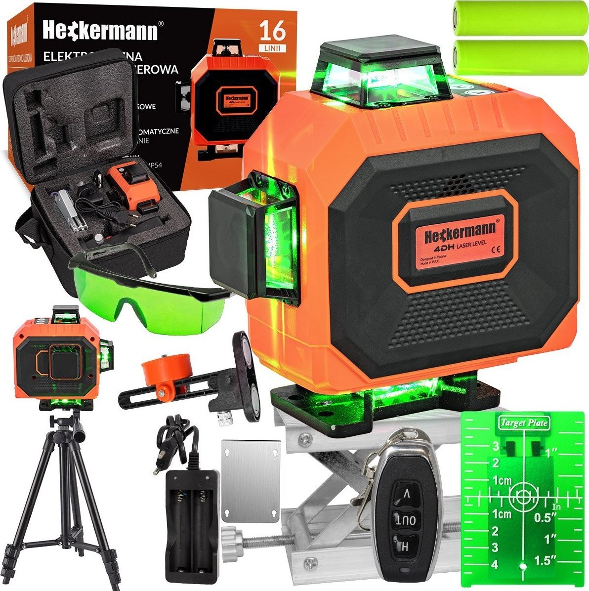 Heckermann Laser-Wasserwaage-Set Heckermann 16 Linien 4DH NEU + Stativ + Schutzbrille + Zielscheibe