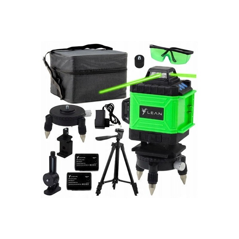 Der 4D-Laser-Nivellierer Lean 26586 ist ein professionelles Gerät, das dank 16 grüner Laserlinien eine außergewöhnliche Messgenauigkeit garantiert und eine vollständige 360°-Abdeckung in drei Ebenen bietet. Er ist die perfekte Lösung für alle, die sich mit der Verlegung von Fliesen, dem Aufbau von Möbeln, Deckenkonstruktionen und Wanddekorationen beschäftigen.