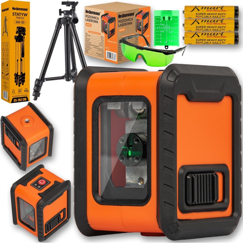 Heckermann Set: Heckermann XRX010 v.2 Laser-Wasserwaage + Stativ + Schutzbrille + Zielscheibe