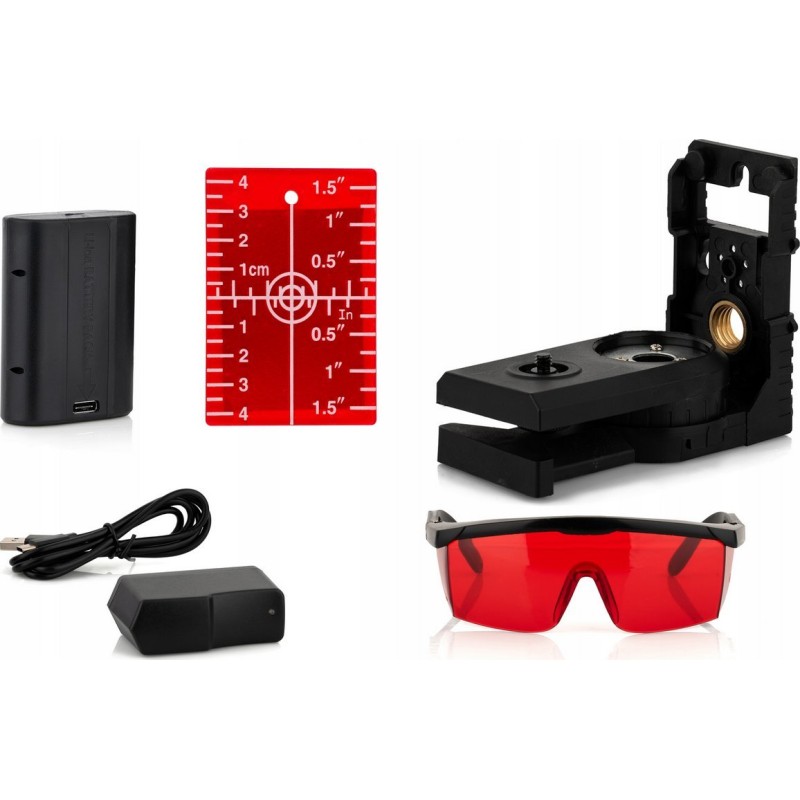 Das Zielscheibchen und die Schutzbrille verbessern die Sichtbarkeit des Laserstrahls bei großen Entfernungen oder in stark beleuchteten Räumen.