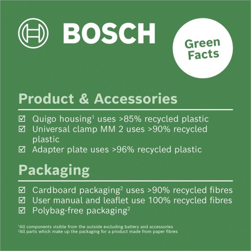 Der Quigo III Laser wurde mit Blick auf den Umweltschutz entwickelt. Die Verwendung von recycelten Materialien und die Optimierung der Elektronik tragen zur Steigerung der Leistung und zur Verlängerung der Akkulaufzeit bei, was ihn zu einer umweltfreundlichen Wahl macht.