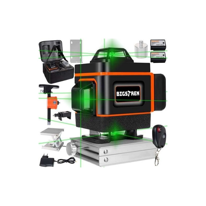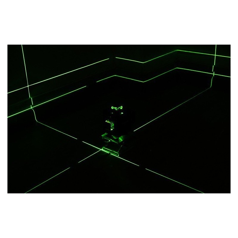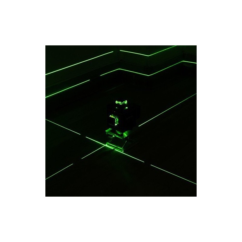 - 4D-MESSUNG – 360 GRAD – sendet 16 Messlinien aus, darunter 8 vertikale und 8 horizontale. Die grünen Laserstrahlen sorgen für eine präzise und klare Nivellierung.