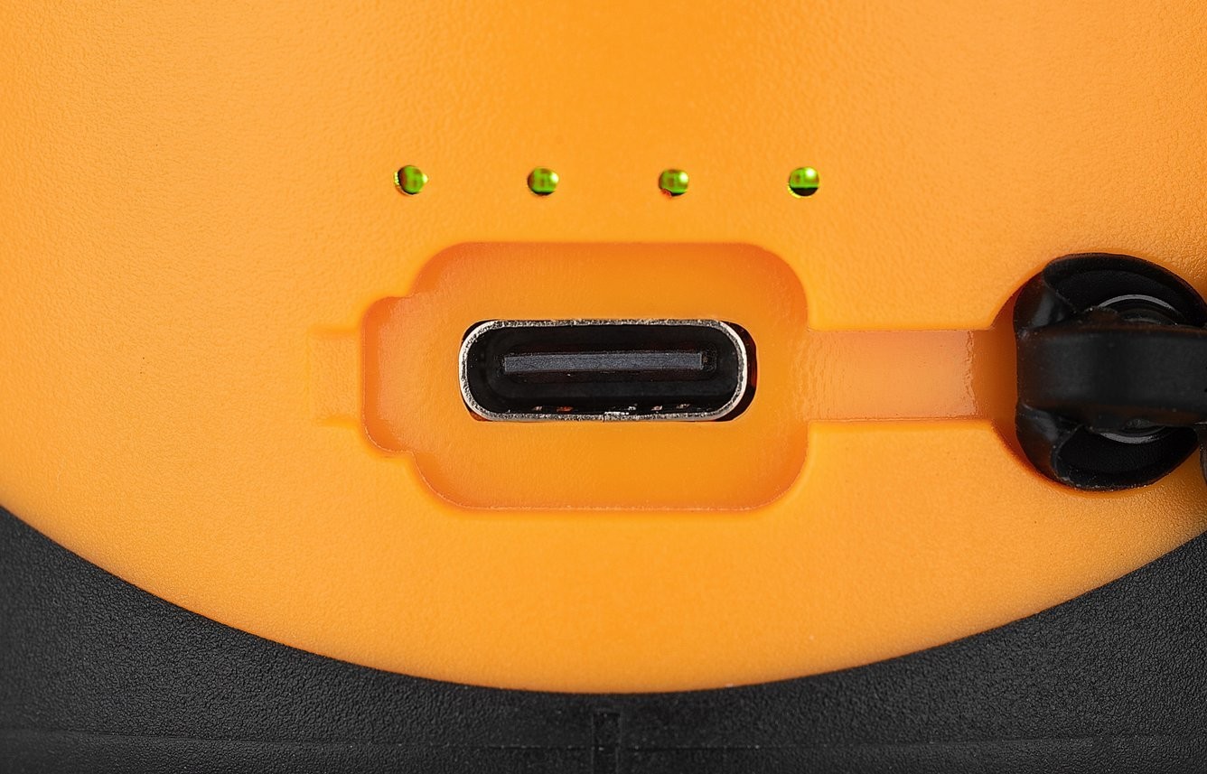 Der integrierte 2000-mAh-Akku wird über das im Lieferumfang enthaltene universelle USB-Kabel vom Typ C aufgeladen. Der Betrieb während des Ladevorgangs ist möglich.