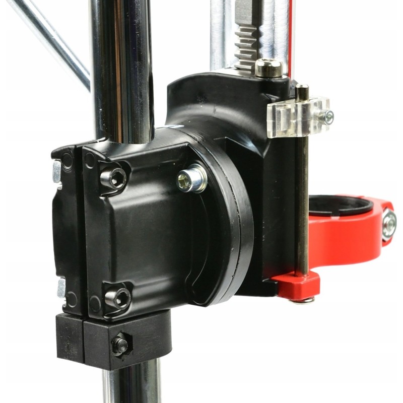 Hochwertiges Bohrstativ mit vertikaler Kopfverstellung. Geeignet für präzises Bohren im Winkel von 0° bis 90° in verschiedenen Materialien. Die Möglichkeit, im Winkel zu bohren, ist besonders in der Tischlerei bei der Herstellung von verdeckten Verbindungen nützlich. Die solide, starre Konstruktion gewährleistet eine extrem hohe Bohrpräzision. Mit den drei im Lieferumfang enthaltenen Adaptern lässt sich praktisch jede Bohrmaschine am Stativ befestigen.
