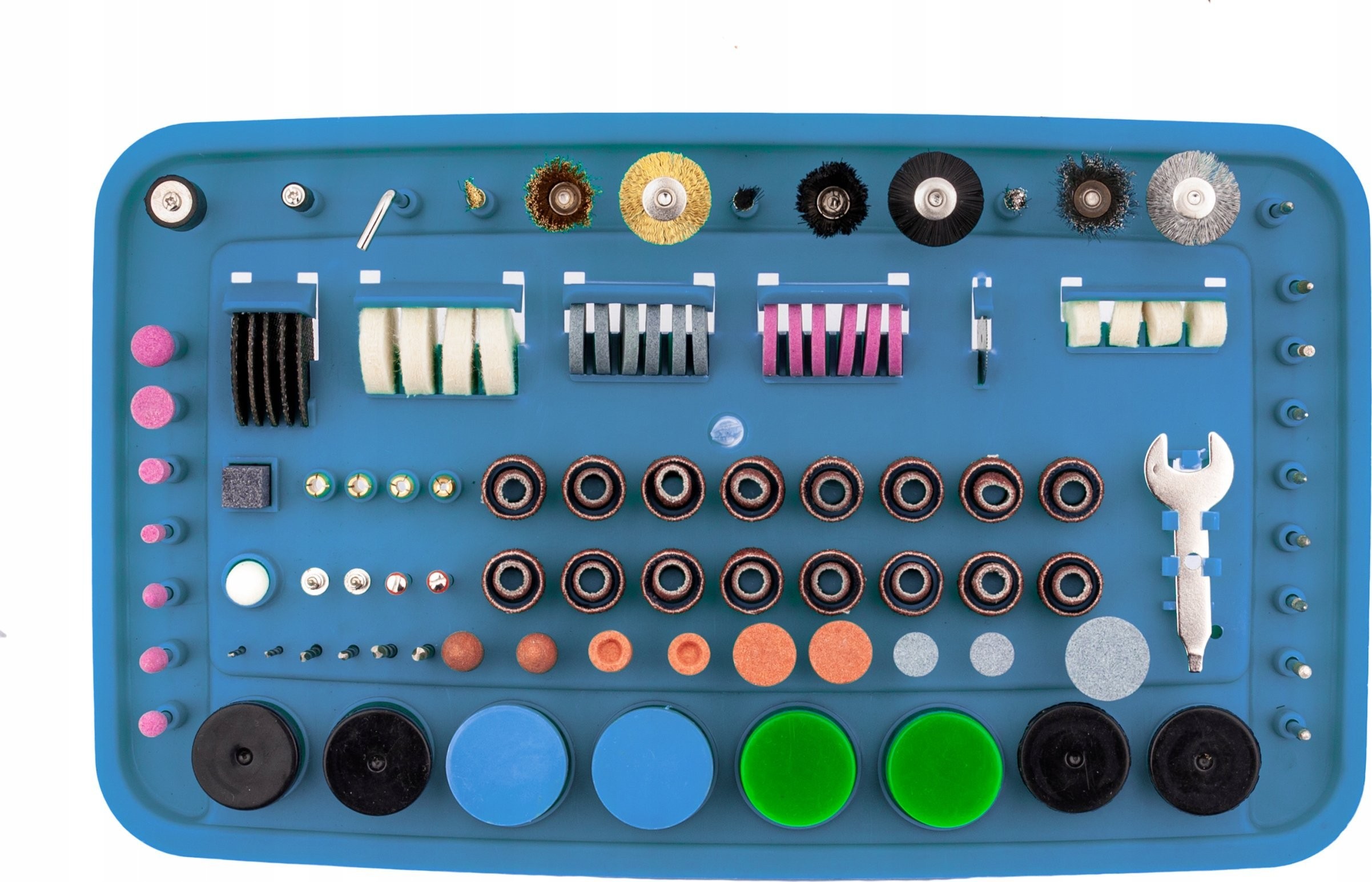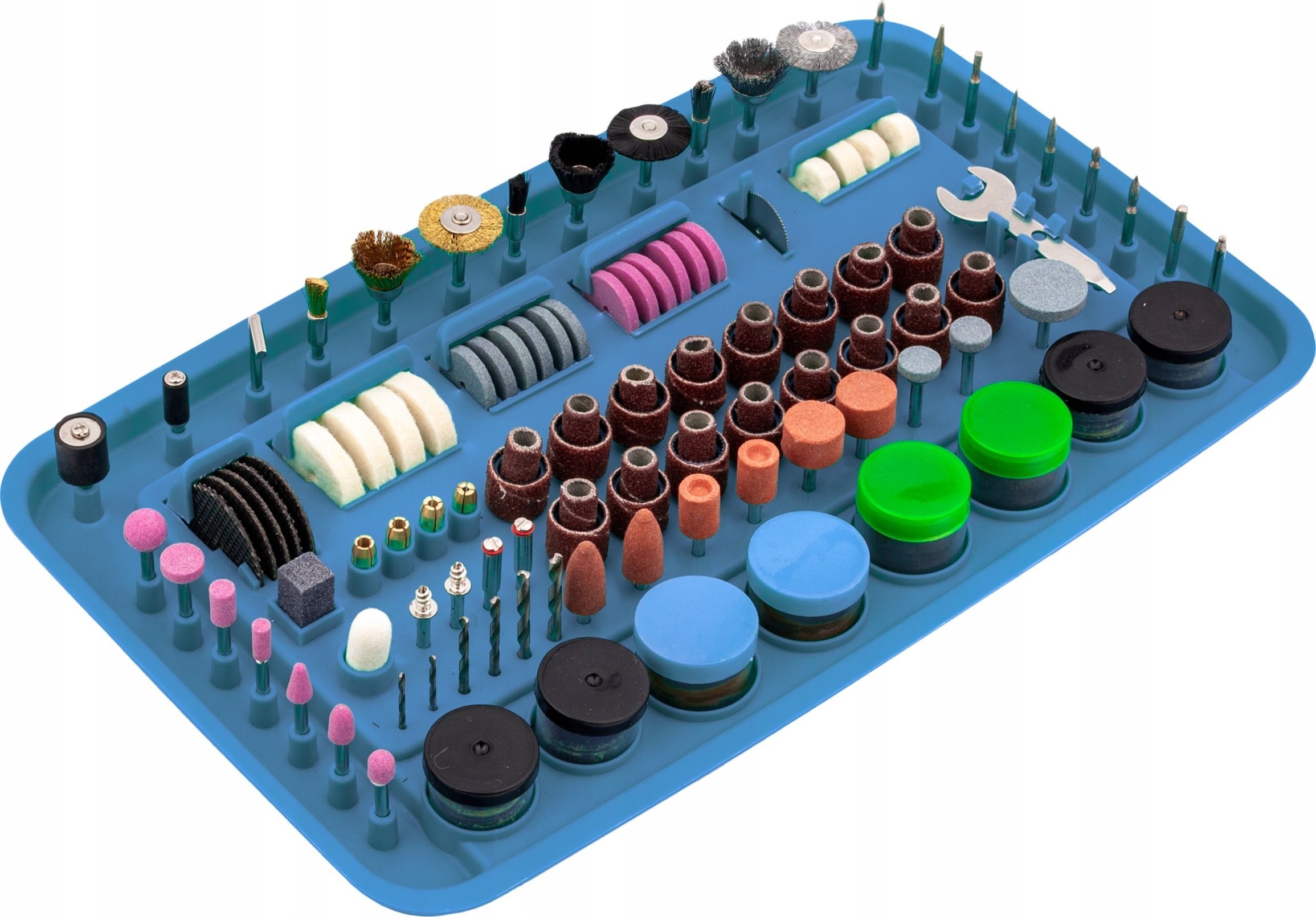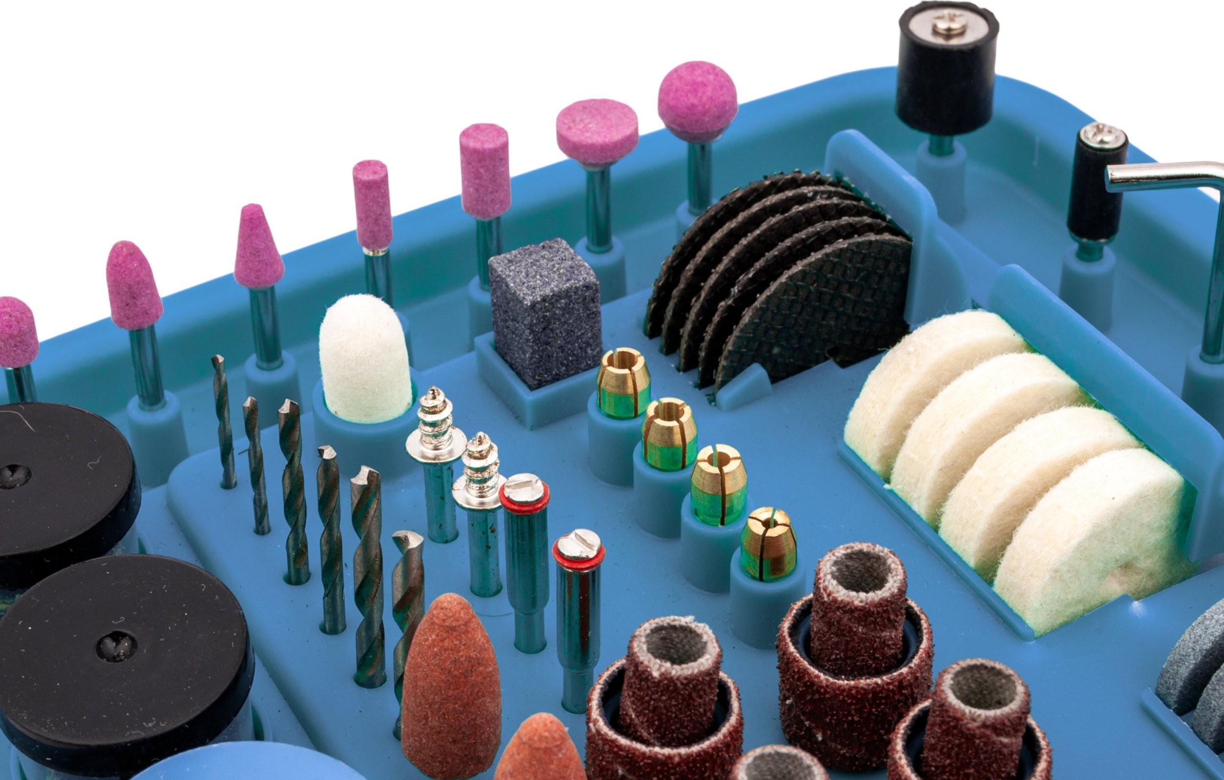 Mikroschleifer mit komplettem Zubehörset Das Gerät ist mit einem 170-W-Elektromotor ausgestattet, dessen Drehzahl stufenlos im Bereich von 8000 bis 35000 U/min reguliert werden kann.