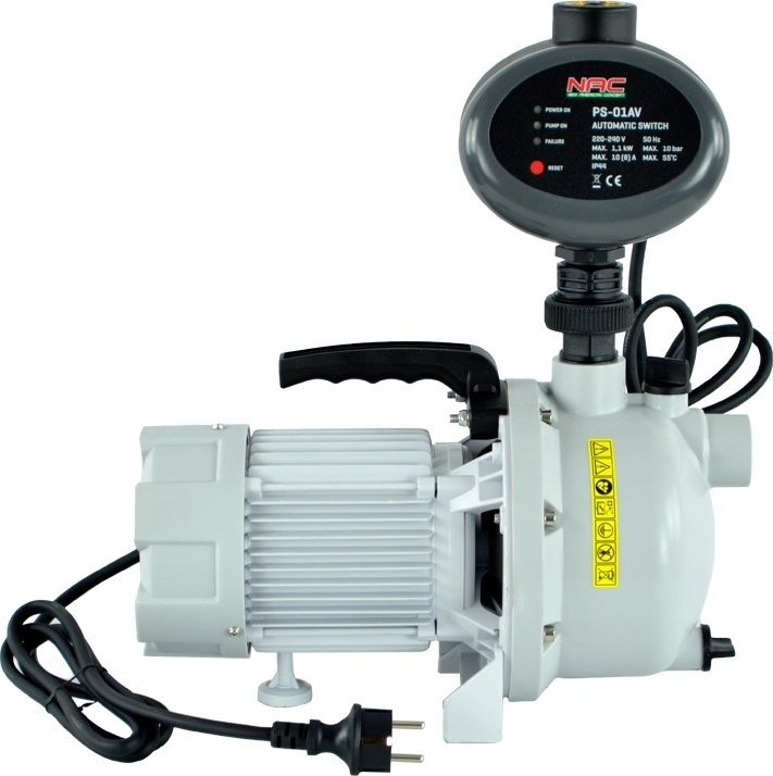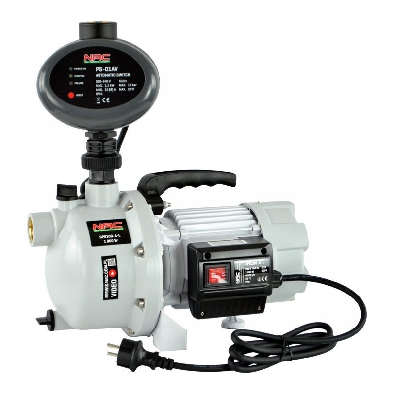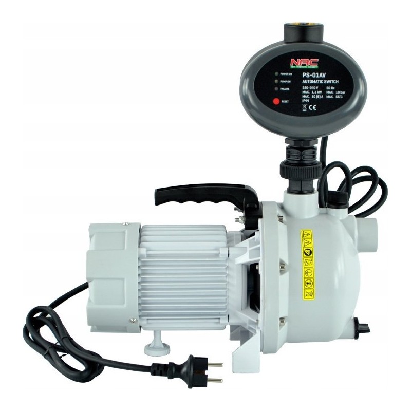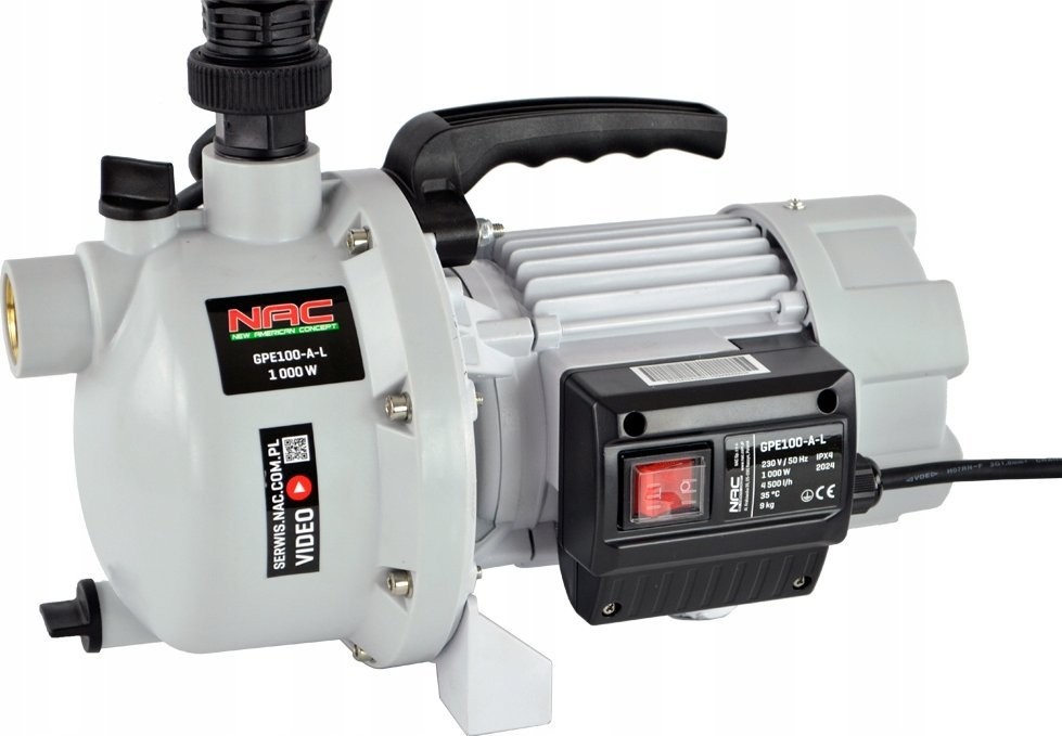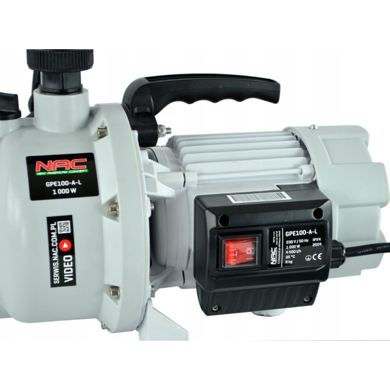 NAC-Gartenwasserpumpe mit einer Leistung von 1000 W und einer Förderleistung von 4500 Litern/Stunde mit automatischer Steuerung.