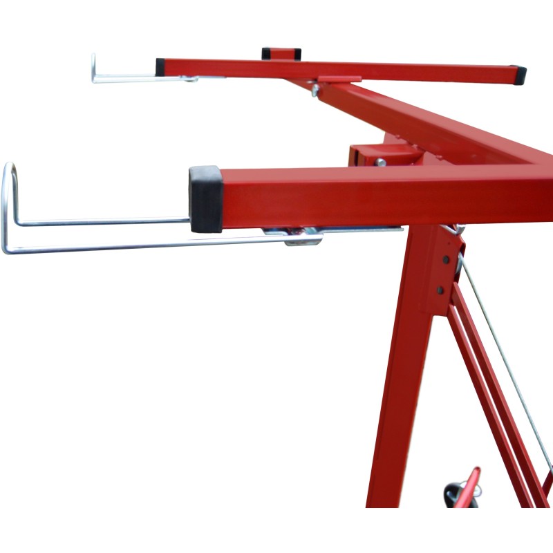 Der Heber zeichnet sich durch eine maximale Tragkraft von 68 kg aus, was für Stabilität und Sicherheit bei der Arbeit sorgt. Seine Konstruktion wurde im Hinblick auf eine einfache Montage und bequeme Lagerung im zusammengeklappten Zustand entwickelt, was ihn zu einer praktischen Lösung für jeden Anwender macht.