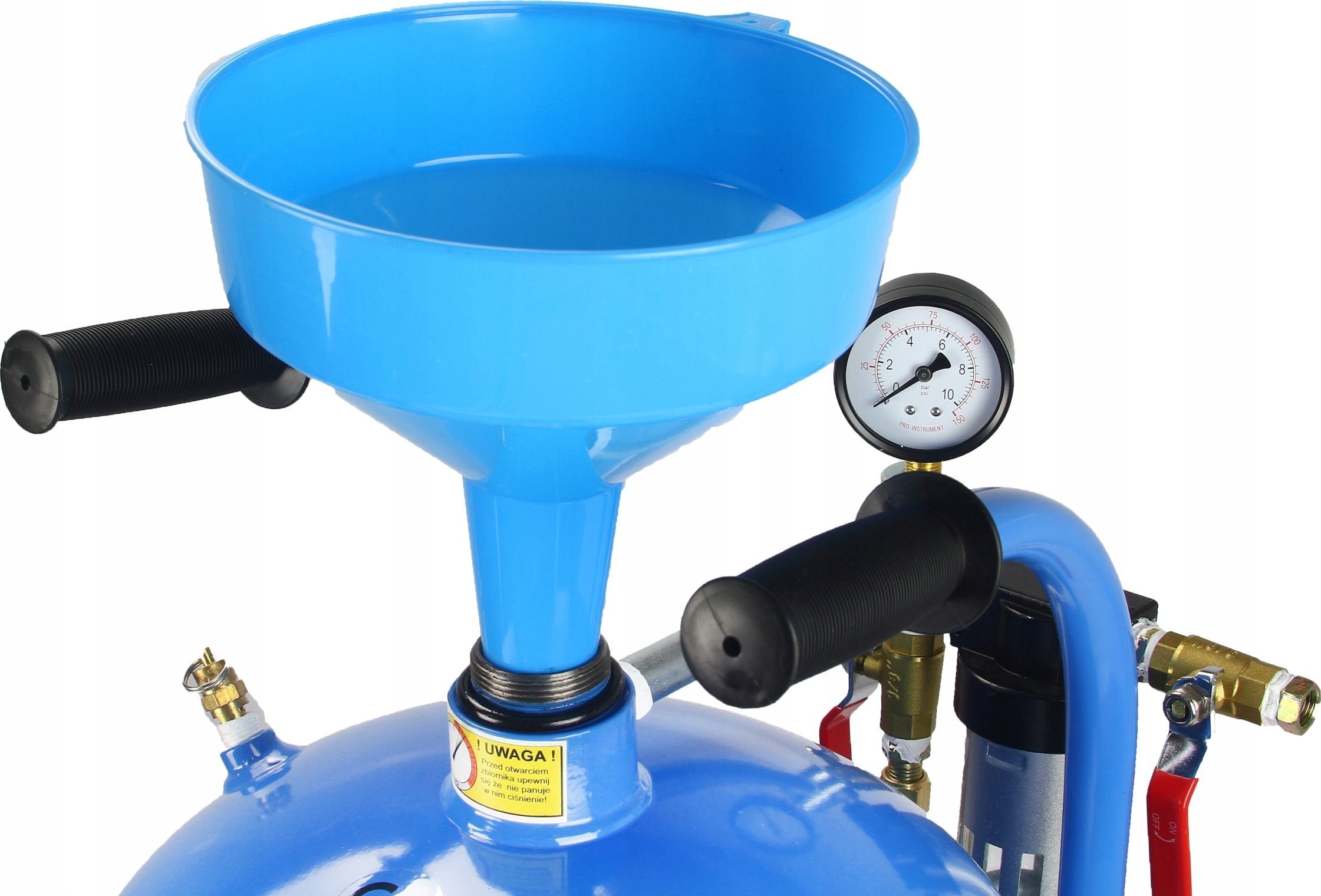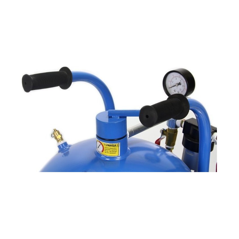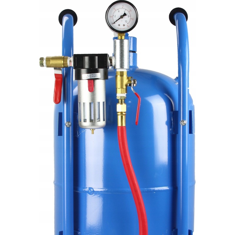 Die Sandstrahlmaschine 38 L RIPPER wurde von Ingenieuren bis ins Detail ausgearbeitet, um den Erwartungen jedes Anwenders gerecht zu werden. Deshalb wurde die Sandstrahlmaschine ZUSÄTZLICH mit einem Manometer mit Luftentwässerung ausgestattet.
