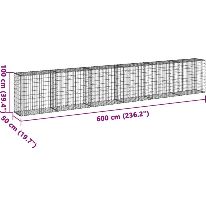vidaXL vidaXL Gabionenkorb mit Deckel, 600 x 50 x 100 cm, verzinktes Eisen