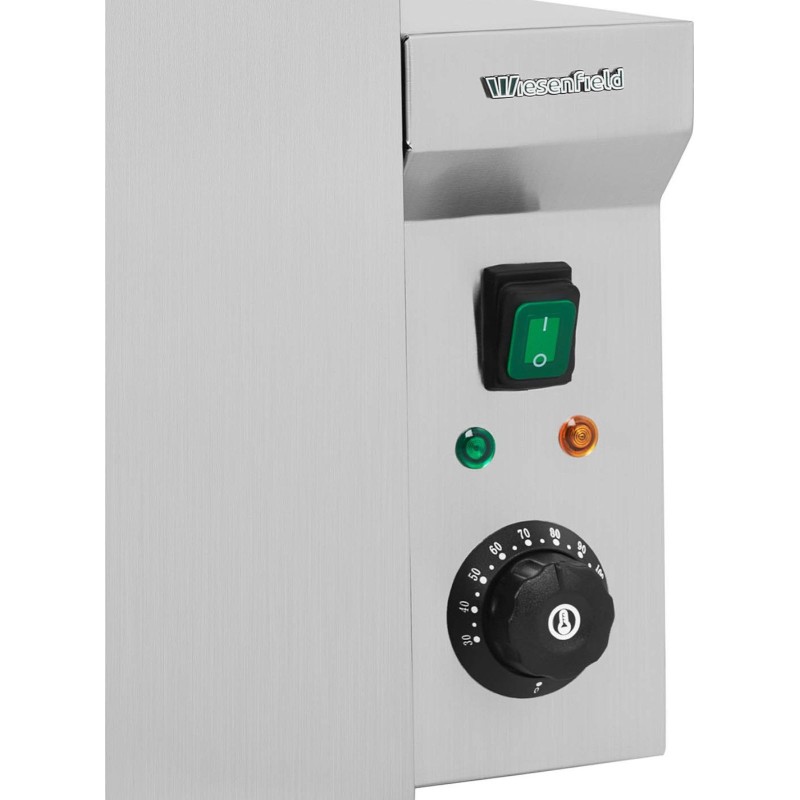 erleichtert die Reinigung. Einfache Bedienung dank eines Drehknopfs zur Temperatureinstellung und einer separaten Ein-/Aus-Taste. Ein empfindlicher Thermostat