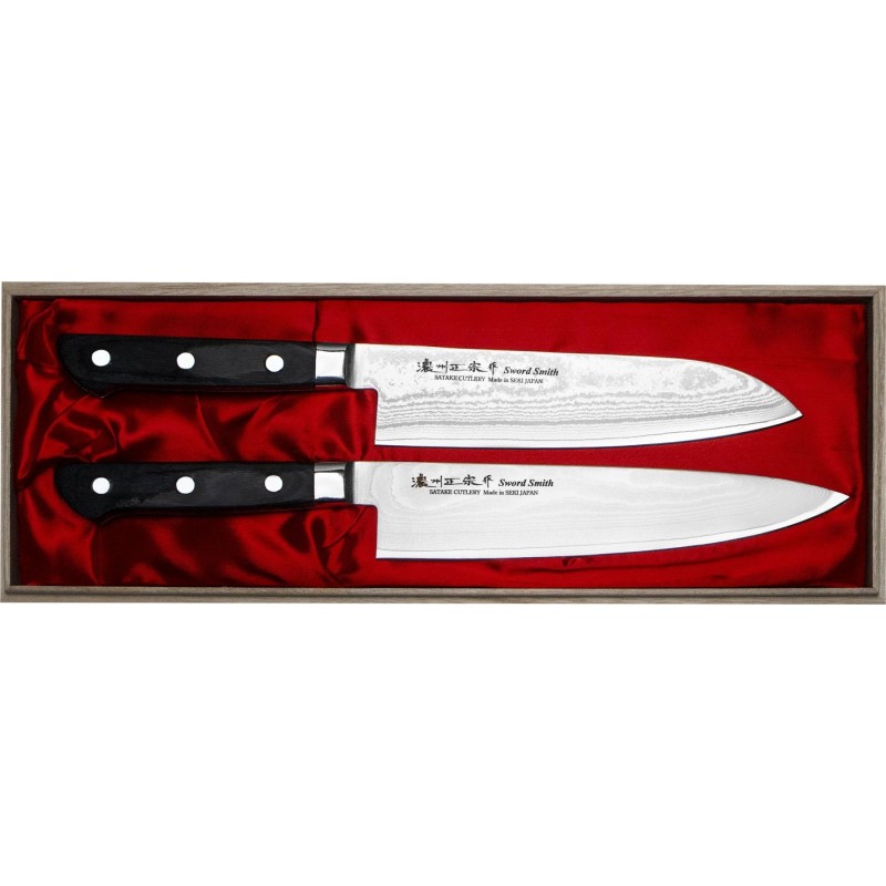 Satake Daichi Japanisches 2-teiliges Messerset: Kochmesser 20 cm und Santoku 18 cm im Holzetui