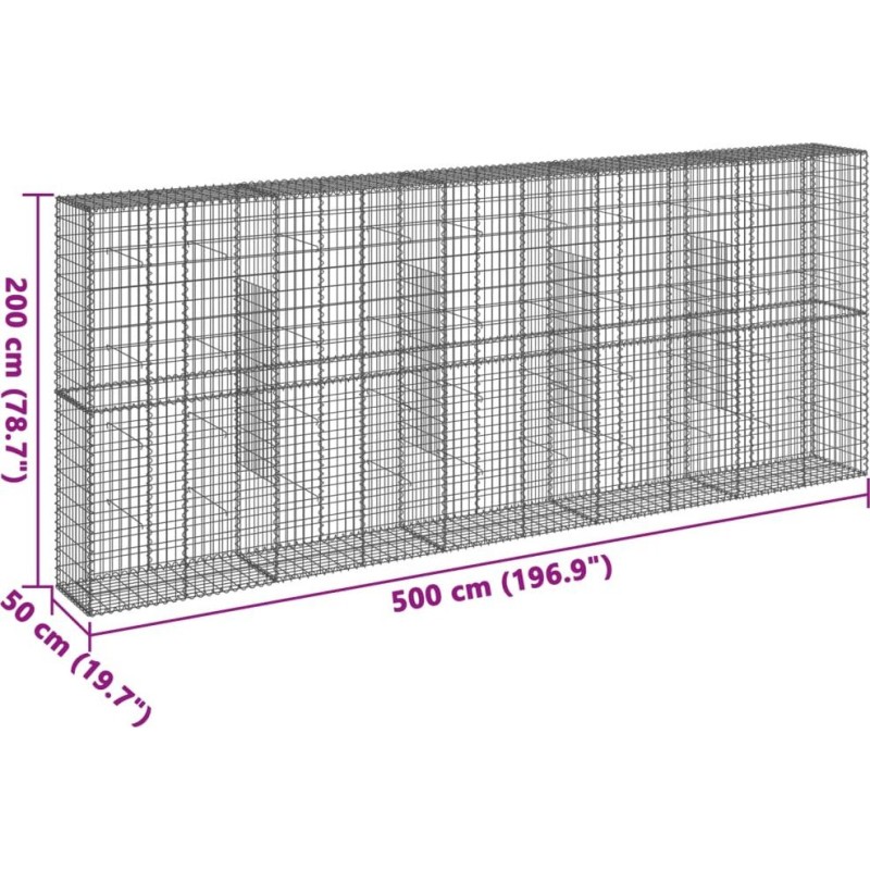 vidaXL vidaXL Gabionenkorb mit Deckel, 500 x 50 x 200 cm, verzinktes Eisen
