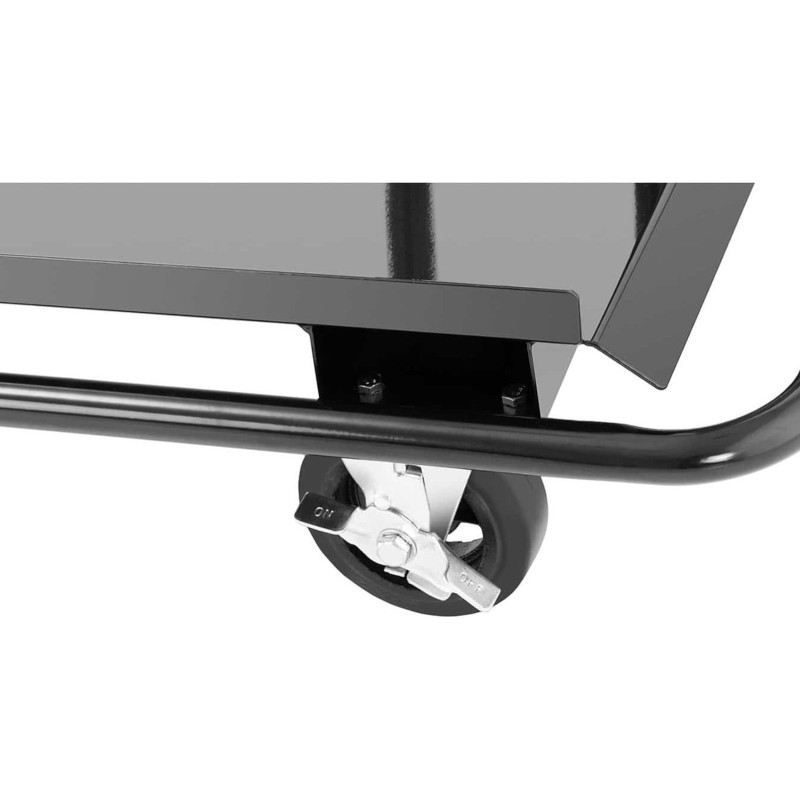 . Dank der geneigten Ladefläche rutschen die Produkte nicht herunter. Der Rahmen ist robust und hält intensiver Beanspruchung stand. Große Gummiräder mit einem Durchmesser von 15 cm