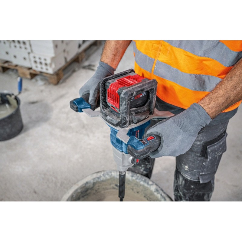 Der Rührer BOSCH GRW 18V-160 ist mit einer Reihe von Sicherheitsfunktionen ausgestattet, wie beispielsweise dem KickBack Control-System, das das Gerät automatisch abschaltet, wenn der Rührer blockiert ist. Darüber hinaus sorgen das elektronische Schutzsystem ECP und das Wärmemanagement für Langlebigkeit und Zuverlässigkeit des Werkzeugs.