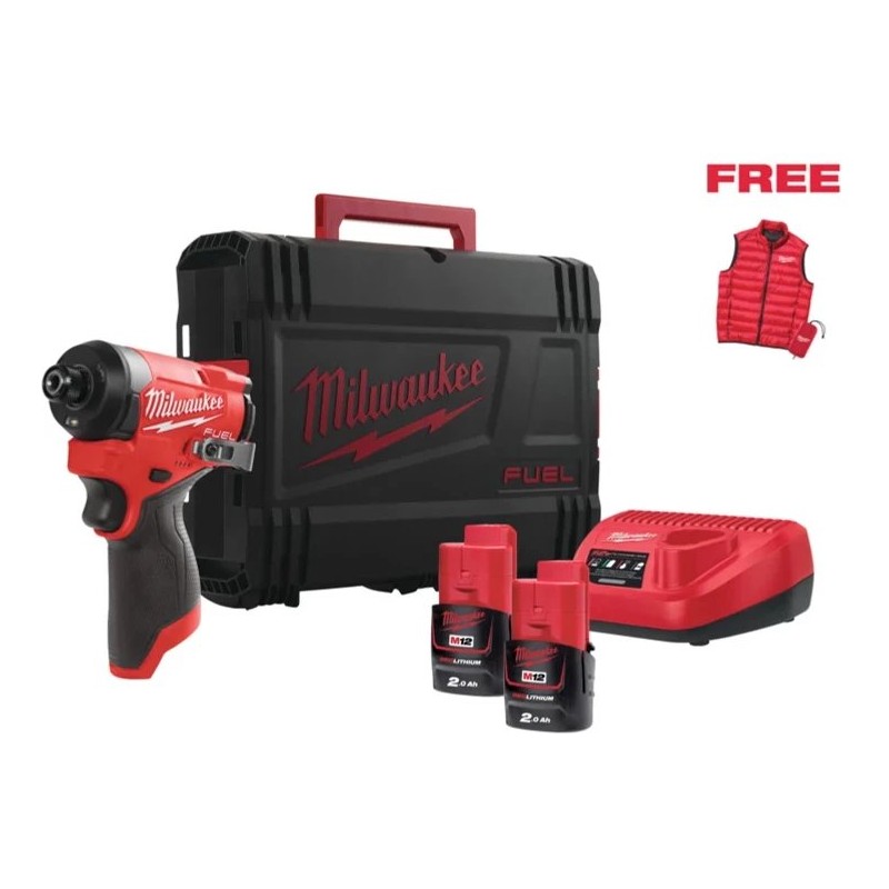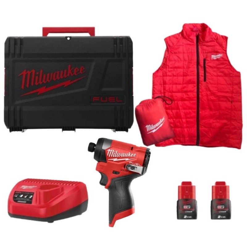Das Set enthält nicht nur den Schrauber, sondern auch das Ladegerät M12 C12 C sowie eine Milwaukee-Weste in Einheitsgröße. Die Weste besteht zu 100 % aus Polyester, verfügt über zwei Taschen und einen Reißverschluss und ist somit eine praktische Ergänzung für jedes Werkzeugset.