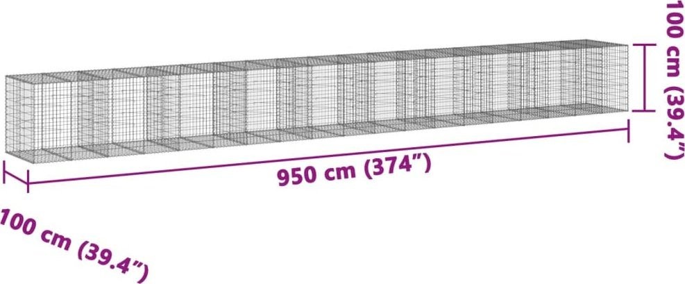 vidaXL vidaXL Gabionenkorb mit Deckel, 950 x 100 x 100 cm, verzinktes Eisen