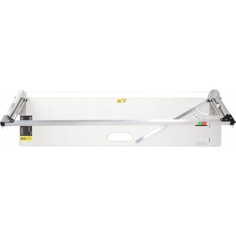 Zusätzlich verfügt die Arbeitsplatte der Maschine über eine integrierte metrische Skala, die präzise Messungen und exakte Abmessungen ermöglicht.