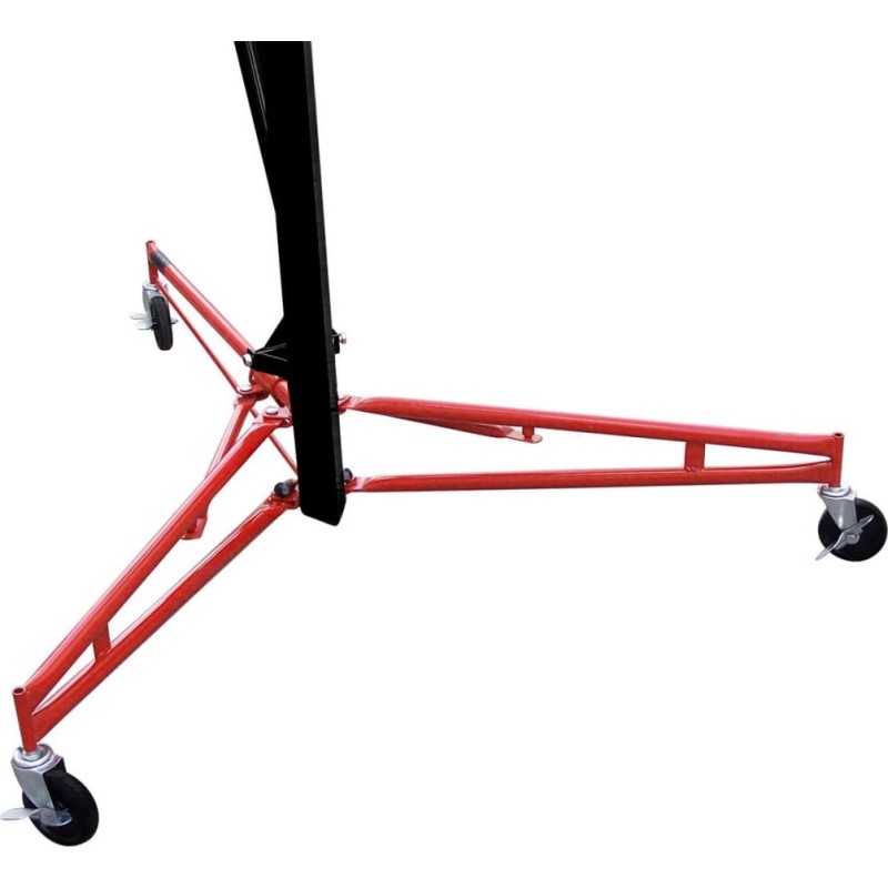 Der Plattenheber kann für Platten mit maximalen Abmessungen von 488 x 122 cm und einem Gewicht von 68 kg verwendet werden. Die Arbeitshöhe ist von 140 bis 350 cm einstellbar. Nach dem Gebrauch lässt sich der Plattenheber einfach und schnell zusammenklappen, was den Transport erleichtert.