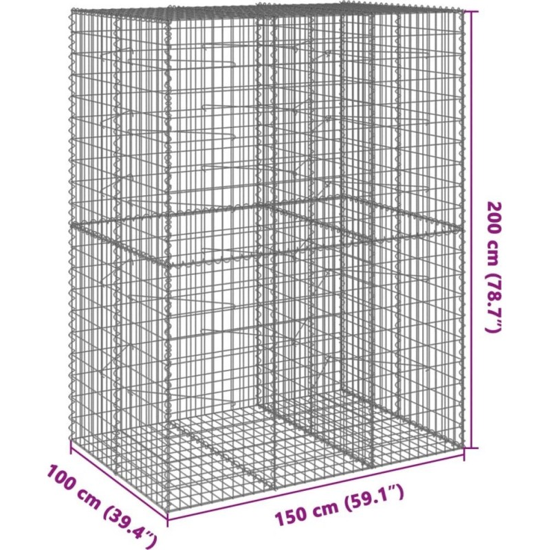 vidaXL vidaXL Gabionenkorb mit Deckel, 150 x 100 x 200 cm, verzinktes Eisen