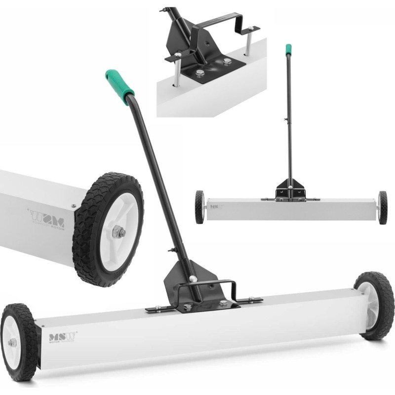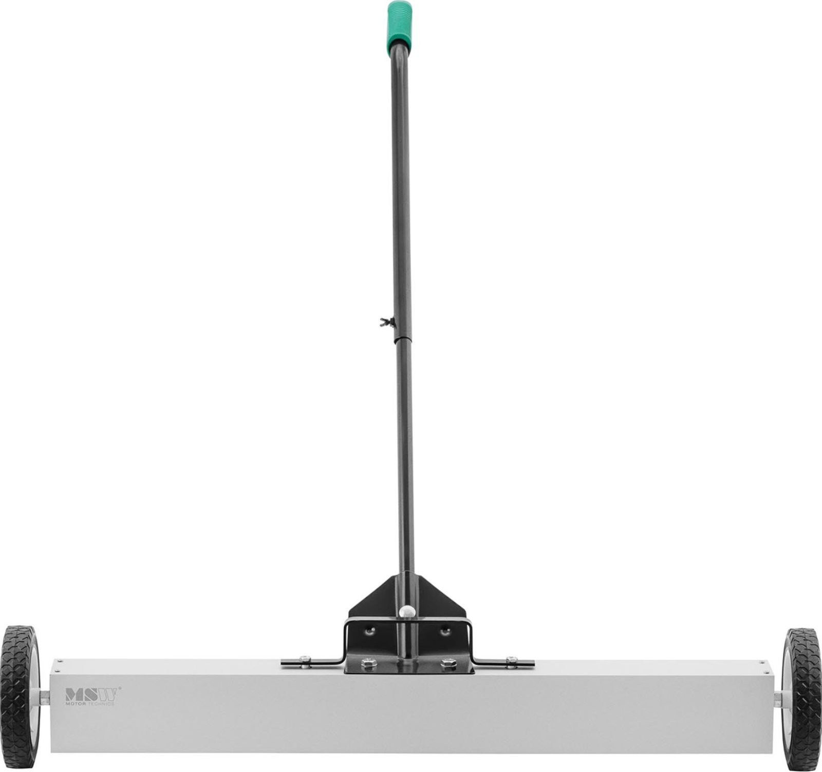 verfügt über einen starken Ferritmagneten. Er sammelt erfolgreich Schrauben, Späne, Nägel, Nadeln und andere kleine Metallteile. Damit lassen sich Gehwege, Rampen, Ladenflächen, Sportplätze, Werkstätten, Baustellen oder Parkplätze reinigen. Der Besen verfügt über einen verstellbaren Stiel im Bereich von 73 bis 100 cm