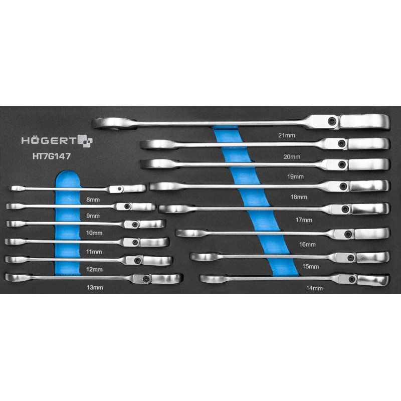 Högert Technik HOGERT KOMBINATIONSSCHLÜSSEL-SET MIT GELENK, 14-teilig, EVA-EINLEGER