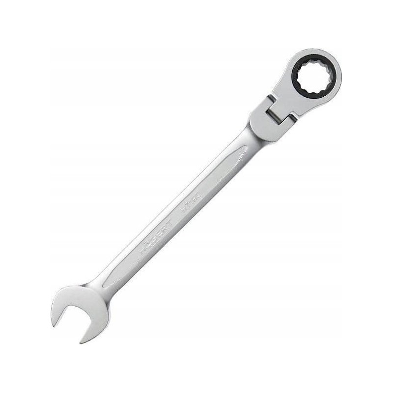 - Der Flachschlüssel ist um 15° zur Achse abgewinkelt, was die Arbeit an schwer zugänglichen Stellen erheblich erleichtert