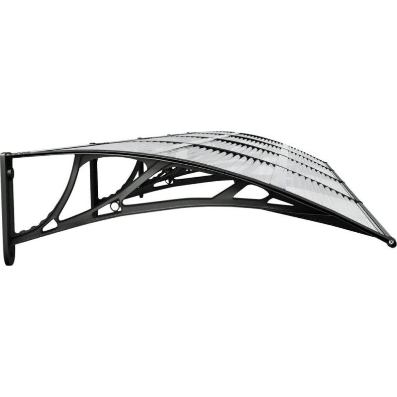 - Langlebiges Material: Die hohlen Polycarbonatplatten, aus denen dieses Vordach gefertigt ist, sind äußerst langlebig, witterungsbeständig und korrosionsbeständig.