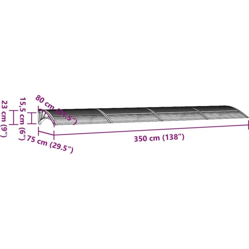 vidaXL vidaXL Türvordach, schwarz-transparent, 350 x 75 cm, Polycarbonat