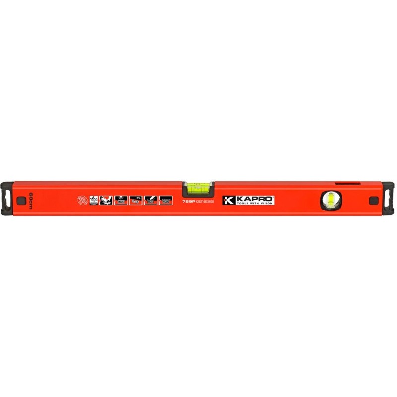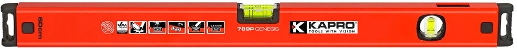 Technische DatenDie Vesilood Kapro Genesis mit einer Länge von 100 cm ist ein Messinstrument, das mit einer Genauigkeit von 0,5 mm/m eine hohe Präzision gewährleistet. Sie ist mit zwei Libellen ausgestattet: einer Wasserwaage und einer Plumb Site® Dual-View™, was ein einfaches Ablesen sowohl von oben als auch von der Seite ermöglicht. Darüber hinaus schützen die Konstruktion aus verstärktem Aluminium und die Gummikappen vor Stößen, was die Lebensdauer des Produkts erhöht.