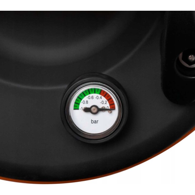 - MANOMETER – Der Saugnapf ist mit einer Saugkraftanzeige ausgestattet. Sie zeigt Werte bis zu 760 mmHg an. Wenn sich der Zeiger im grünen Bereich befindet, ist die Saugkraft am größten.