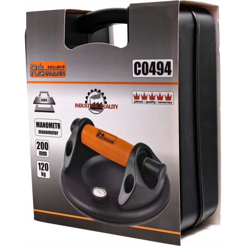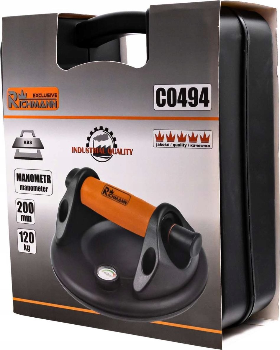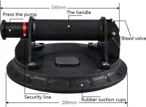 - TECHNISCHE DATEN – Farbe: schwarz; rutschfester Griff: ja; Tragkraft: 200 kg; Manometer: 0–760 mmHg; Durchmesser des Saugnapfes: 200 mm; Material: Gehäuse aus strapazierfähigem ABS-Kunststoff + Saugnapf aus Gummi; Abmessungen: 20 x 20 x 9 cm; Gewicht der Saugnapfhalterung: 1,051 kg; Gewicht verpackt: 1,921 kg