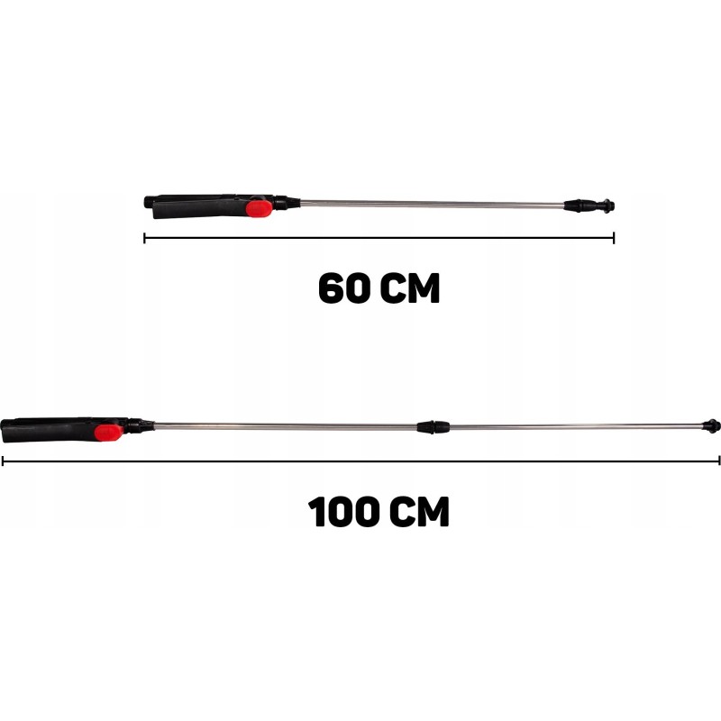 - Sprühstange: Länge 60 cm, auf 100 cm verlängerbar, mit Arretierungsfunktion – für kontinuierliches Sprühen