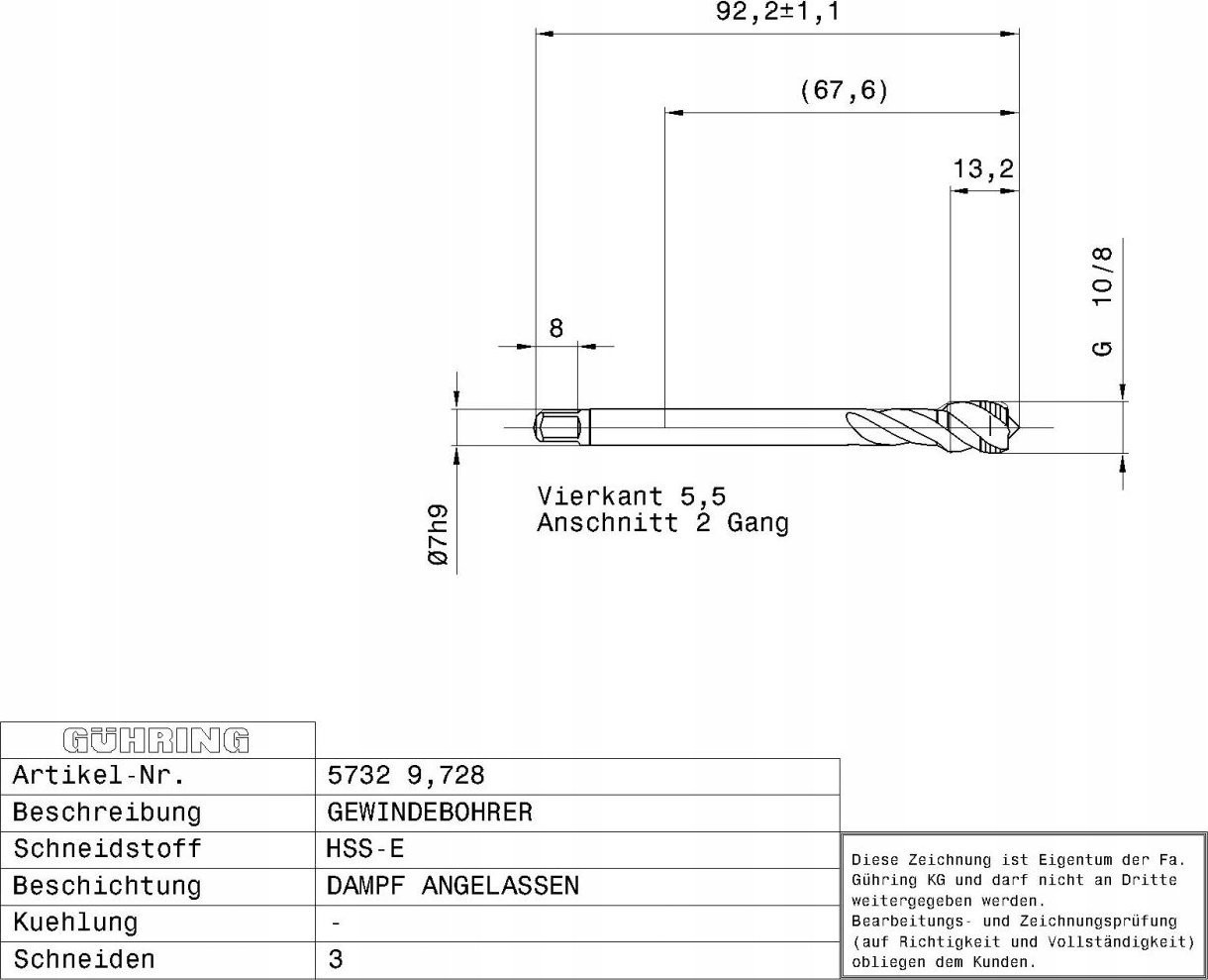 GUHRING-Gewindebohrer für Sacklöcher GUHRING HSS-E 5732 G1/8 – 28 Gewindegänge