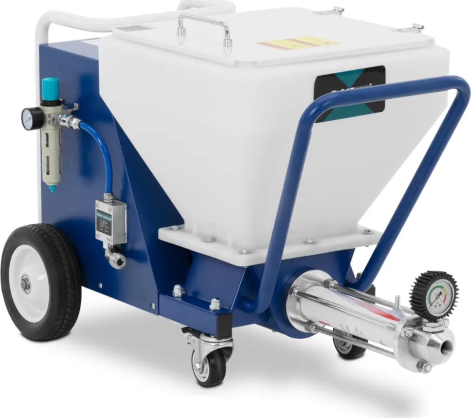 - - Der 40-Liter-Behälter ermöglicht ein problemloses Arbeiten auf großen Flächen mit der Verputzmaschine,