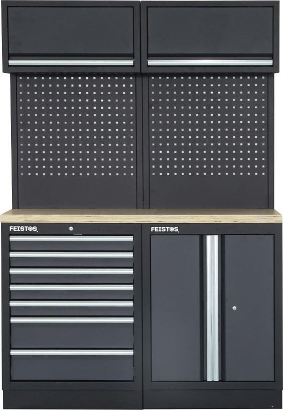Hohe Qualität und SicherheitDer aus pulverbeschichtetem Stahl in den Farben Anthrazit und Schwarz gefertigte Schrank bietet nicht nur ein ansprechendes Design, sondern auch Langlebigkeit. Dank der abschließbaren Fächer sind Ihre Werkzeuge stets sicher aufbewahrt.