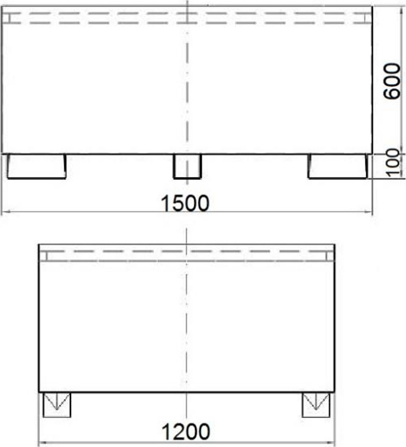 - - Abmessungen des Wannenbodens: 1200 x 1500 mm