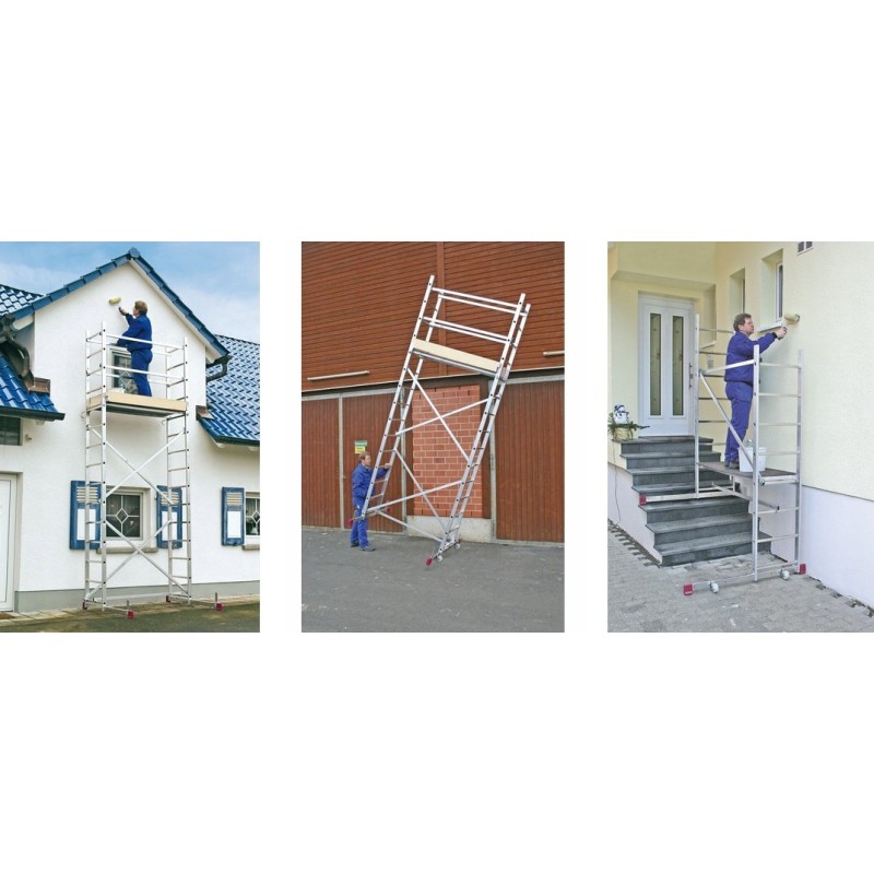 Montagegerüst mit einer maximalen Arbeitshöhe von ca. 4,00 m. Schnelle und einfache Montage ohne Werkzeug.