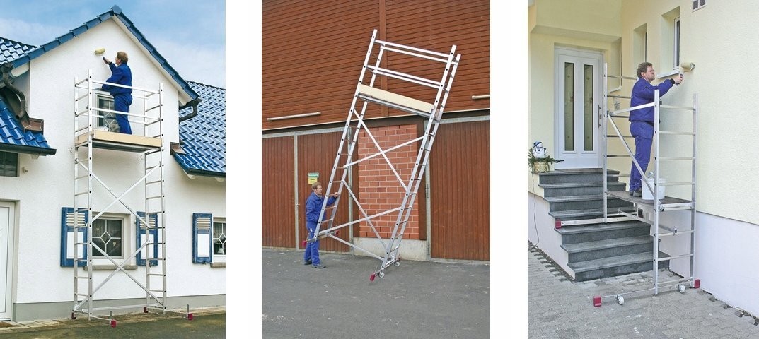 - Das Gerüst kann auf Treppen oder an Stellen mit unterschiedlichen Höhen eingesetzt werden