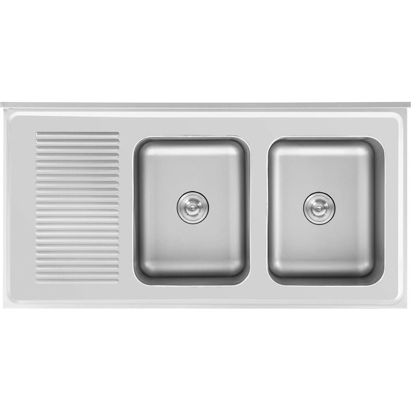 Die Zweikammer-Spüle hat die Maße 500 x 400 x 300 mm