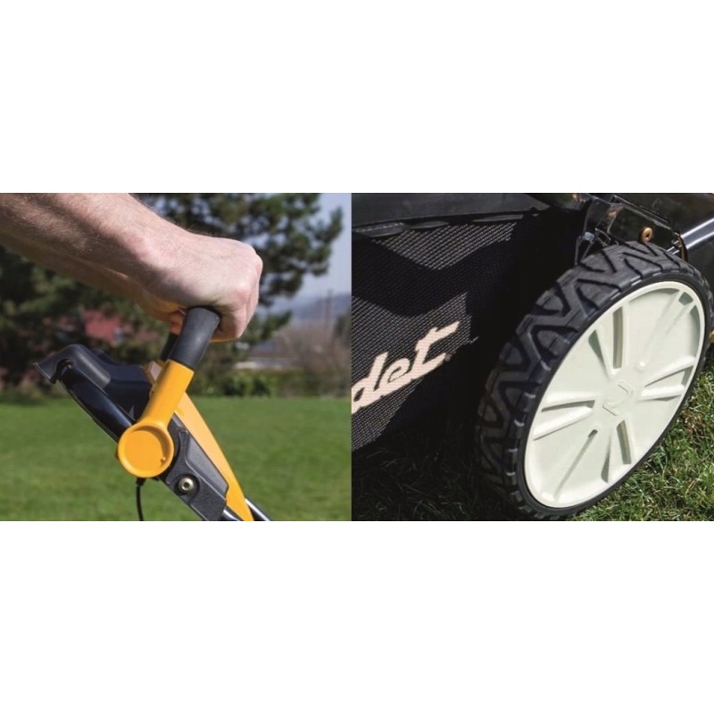 Der Benzinrasenmäher LM3 CRC46s ist die ideale Lösung für Besitzer großer Rasenflächen. Sein herausragendstes Merkmal ist das innovative MYSPEED™-Geschwindigkeitsregelsystem. Die Geschwindigkeit des Rasenmähers hängt vom Druck auf den Griff ab. Bewegt sich der Bediener schnell, wird der Griff stärker gedrückt, wodurch die Geschwindigkeit des Mähers zunimmt. Bewegt sich der Bediener langsamer, ist der Druck auf den Griff geringer und der Antrieb des Mähers verlangsamt sich. Bleibt der Bediener stehen, geht der Hebel in die Neutralstellung und der Antrieb wird ausgeschaltet. Der Motor des Mähers ist ein leistungsstarkes und langlebiges GreenCut-Modell, das auch für unerfahrene Benutzer einfach zu bedienen ist. Darüber hinaus sind die Betriebskosten dieses Antriebs gering, und es sind Wartungssätze erhältlich.