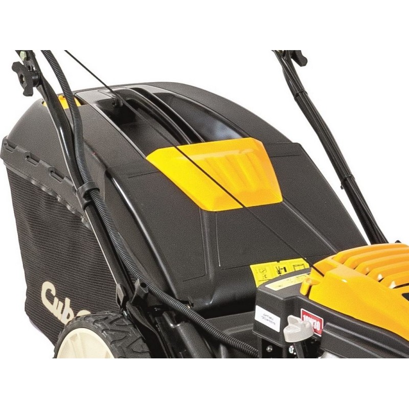 Motortyp: Verbrennungsmotor, Viertakt, OHV. Motorhersteller: CUB CADET. Motormodell: CC 55 OHV ES Auto Ssanie. Hubraum: 159 cm³. Nennleistung: 2,5 kW. Anlasser: elektrisch. Schnittbreite: 53 cm. Antriebsart: Eigenantrieb auf die Hinterräder. Fahrgeschwindigkeitsregelung: ja, Variator. Antriebsart: MySpeed. Funktionen: Heckauswurf, Auffangbehälter, Seitenauswurf, Mulchen (4-in-1). Schneidhöhenverstellung: 6-stufig. Art der Höhenverstellung: zentral für alle Räder. Minimale Schnitthöhe: 28 mm. Maximale Schnitthöhe: 92 mm. Gehäuse: Stahl. Fassungsvermögen des Grasfangkorbs: 70 l. Art des Grasfangkorbs: Netzkorb mit Kunststoffdeckel. Durchmesser der Vorder-/Hinterräder: 200 mm / 280 mm. Räder mit Kugellagern: ja. Gehäuse-Reinigungsfunktion: ja. Füllstandsanzeige für den Grasfangkorb: ja.