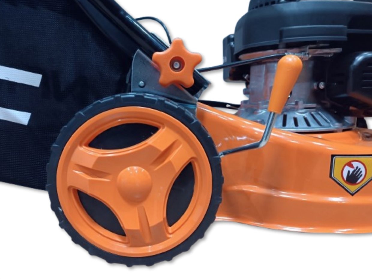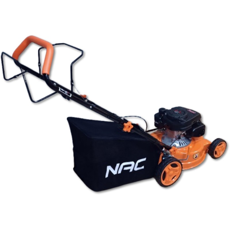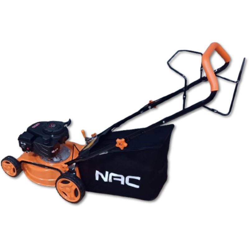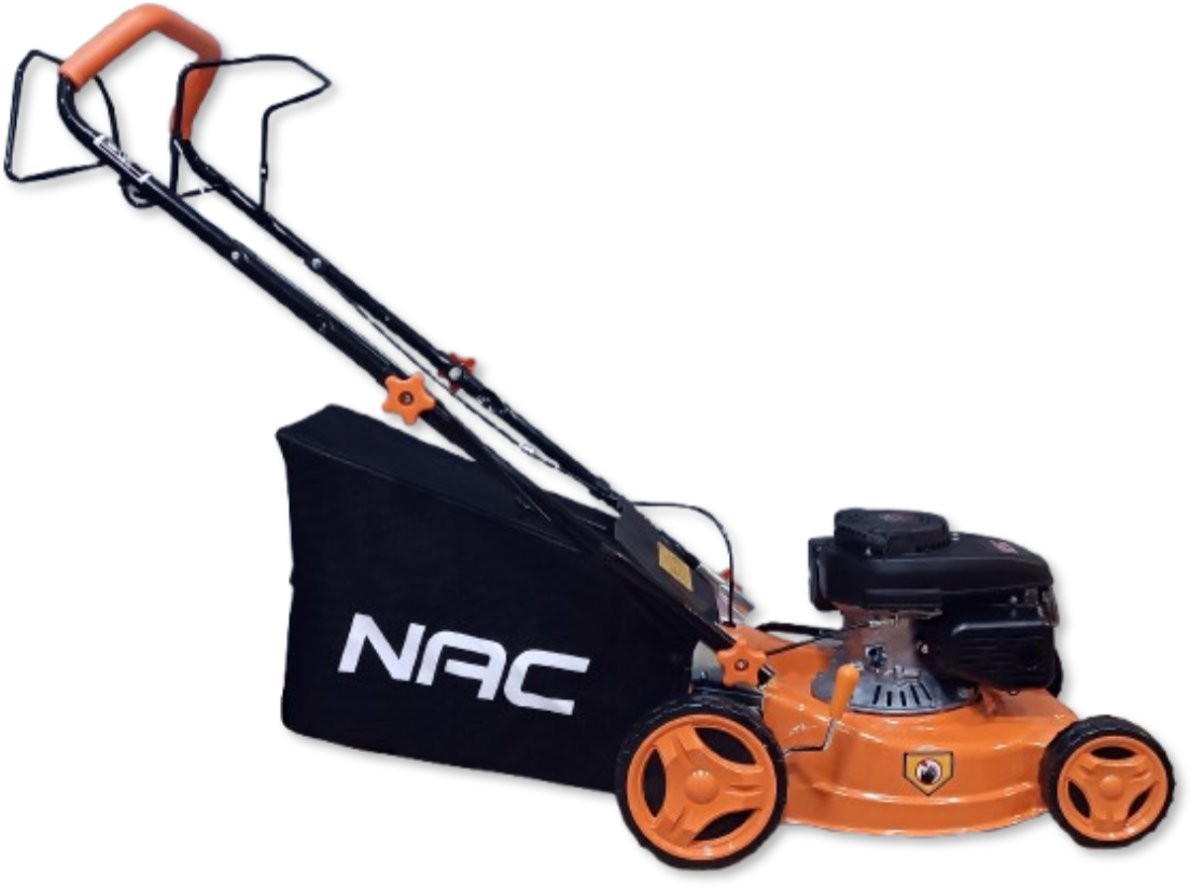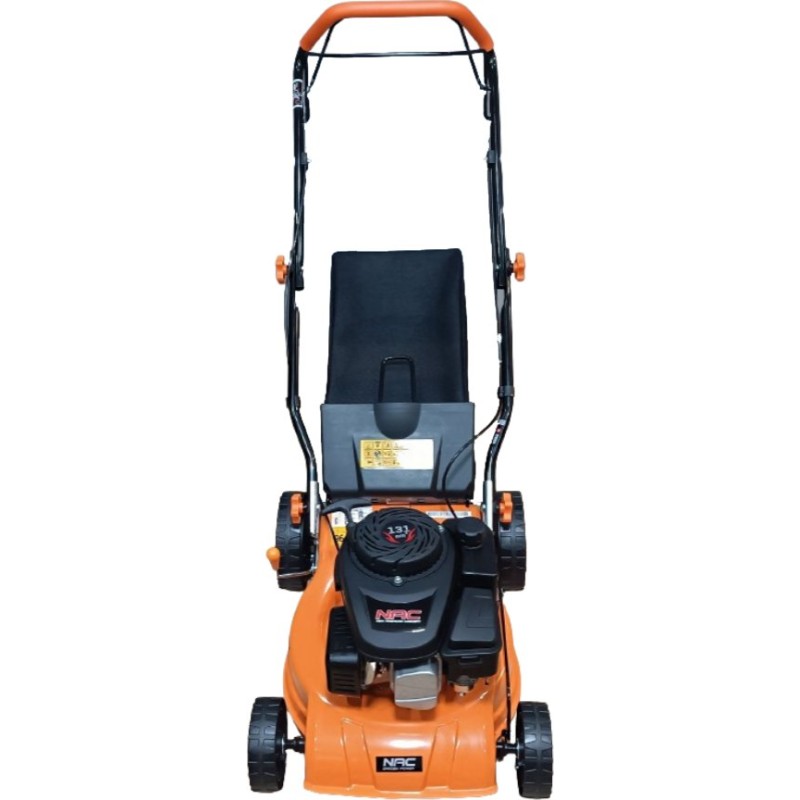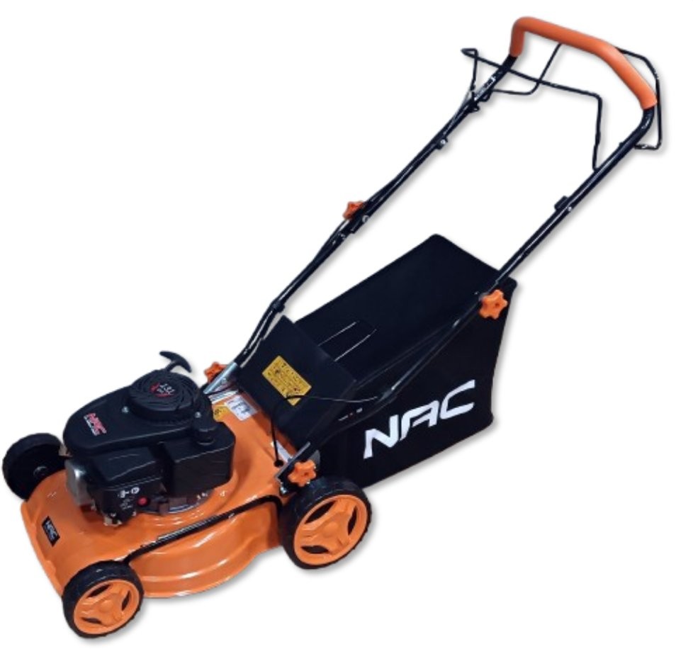 Benzin-Rasenmäher der Marke NAC mit einer Schnittbreite von 40 cm, ausgestattet mit einem einzylindrigen, luftgekühlten Viertakt-Benzinmotor mit 131 cm³ Hubraum und einer Leistung von 2,3 kW. Der Rasenmäher verfügt über einen automatischen Antrieb mit einer über einen praktischen Hebel gesteuerten Kupplung, der ein schnelles und bequemes Mähen ermöglicht. Darüber hinaus verfügt der Rasenmäher über Räder mit großem Durchmesser, die den Einsatz in unterschiedlichem Gelände erleichtern, sowie über ein robustes Stahlgehäuse. Der Rasenmäher verfügt über eine komfortable Schnitthöhenverstellung (mit einem Hebel) im Bereich von 25–75 mm (7-stufige Schnitthöhenverstellung) sowie einen Grasfangkorb mit einem Fassungsvermögen von 45 l, der längeres Arbeiten ohne Entleeren ermöglicht. Für den Betrieb des Rasenmähers ist bleifreies Benzin 95 Pb zu verwenden.